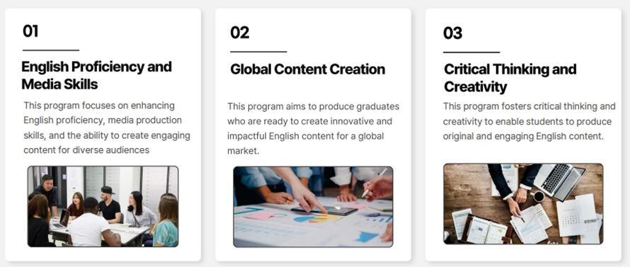 | Educational Objective | The educational objective is to produce graduates who possess strong English language skills, a deep understanding of media production, and the ability to create engaging content for diverse audiences. |