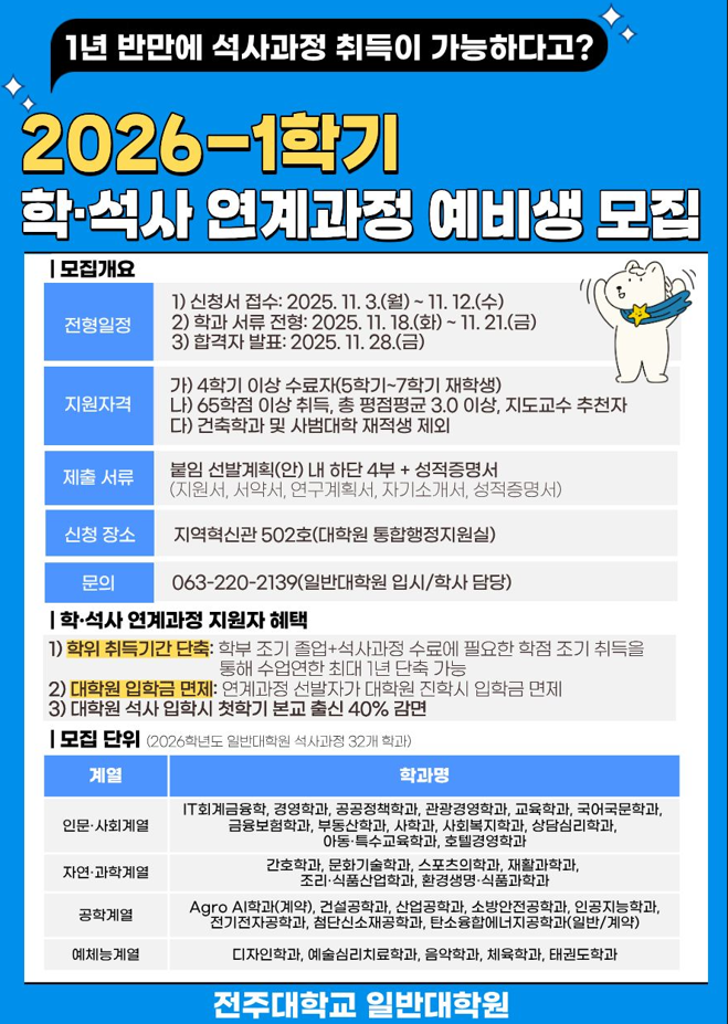 | [일반대학원] [모집종료] 2026-1학기 일반대학원 학·석사 연계과정 예비생 신청 안내 |